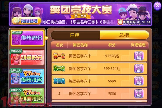 《劲舞时代》手游舞团竞技挑战赛排名示例