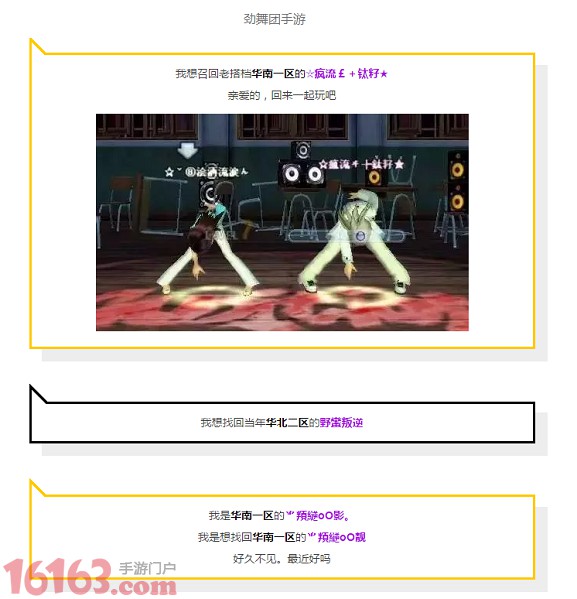 由网易代理、久游研发的《劲舞时代》官方唯一正版同名手游正在全平台火热公测中。自9月20日全平台上线以来,《劲舞时代》手游已经吸引数百万玩家携手回归。近日,《劲舞时代》官方为了回馈首批老玩家的回归,更为玩家们开放了寻找昔日老搭档的寻人计划。据悉,玩家们只要报名填写相关信息,便有机会重新找回失联已久的老搭档,一起携手尬舞,回忆青春!现在,已经有部分老玩家成功找回了过去的老搭档,想要参与寻人计划的玩家,现可立即登录官网下载游戏,老搭档在等你哟!