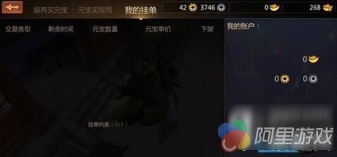 我的挂单:可以显示当前侠士本人寄售的元宝与账户信息。交易成功或交易单下架后,货币会返还到我的账户中,需要各位大侠手动进行提取。