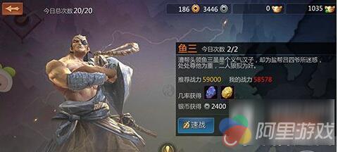 这一关的推荐战力虽然达到了59000,但是鱼三的实力战斗力只有45370,随意玩家实际上只要有5000的战斗力,挑战起来就不会太过困难,比前面的吕四爷要好过一些。