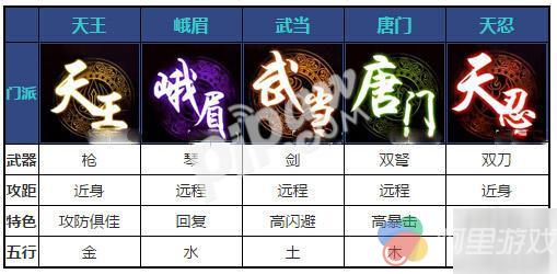 剑侠世界手游五大职业所代表的五行方位,以及每个职业的特色如下图所示: