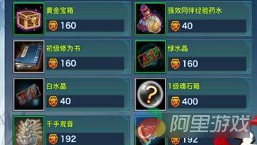 2、从家族珍宝坊中,兑换相应的道具,例如可兑换绿水晶,白水晶,初级修为书、1/2级魂石箱等等。