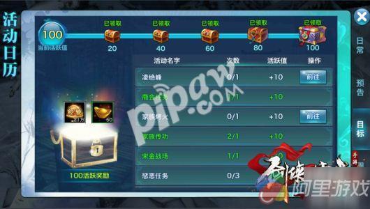 1、完成每日活跃100点,将获得5个阶段活跃度奖励,每阶段21万经验。