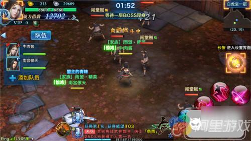3、主动出击:战力较高的玩家,建议在未刷新小怪的时候,先把战力低的玩家送出白虎堂,小怪可以慢慢清,甚至跟Boss一起清都是没有问题的!