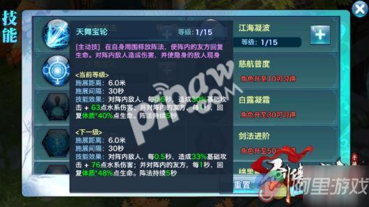 在自身周围释放阵法,使阵内的友方恢复生命,对进入阵内的敌人造成伤害,并使隐身的敌人显性。峨嵋派一个将攻防集合为一体的技能,不仅回血效果优秀,更是能对敌人造成伤害,最重要的是在PVP中,可以现形敌方天忍的隐身刺杀,属于一个CD好了就要使用的技能,小编建议点满。