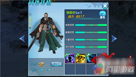 SS级同伴:此等级只有三个而且获得难度较大,其次,其中功能性比较全的独孤剑大叔才是我们的好基友。范围性的减伤,木系以及全系抗性的提升,会心免伤更是锦上添花。最重要的是基础属性高!2400的力量最高上限,这等高额的伤害配合土属性,让我们在面对峨嵋时能够轻松的将其斩杀!
