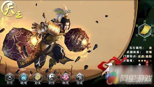 天王,剑侠江湖第一前排,抗伤害能力那是杠杠的,不仅如此他还拥有不俗的控制能力,但是攻击距离短和伤害不高成为他的硬伤。本身属性为金属性,对木属性的逍遥有克制作用,但是却被桃花、天忍两大职业压制。技能方面天王门既有增加防御能力的技能也有一个小型的控制技能。但是通过技能的加成不难发现,天王在设计上就是一个肉盾职业,伤害提升仅能通过攻击力和属性加成实现,而坦克能力却被全面放大,所以在天王的装备强化方面,主要走防御路线,通过提高血量以及回复能力成为出色的前排。