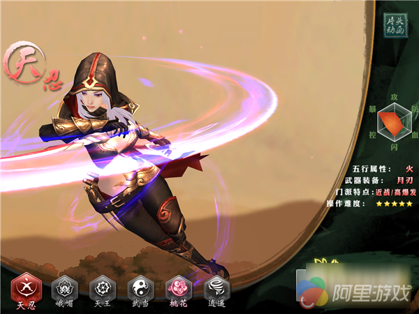 天忍的五行属性为火,也正和其的自身技能搭配,在五行相克中水克火,火克金,金克木,所以从五行相克来说,峨嵋是天忍的死敌,天王完全压制。根据天忍的门派五行克制的属性,应该在水属性方面做主要提升,金和木属性次要增强。所以首要增强水抗性,其次就是金和木抗性。