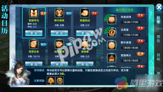 在游戏中点开活动,可以在日常活动中看到家族传功。接着给大家讲讲怎么个玩法,家族传功只能在家族成员之间进行,等级之间要相差3级才可以进行。高等级的玩家可以给低等级的玩家传功,低级的玩家可以获得大量的经验。在家族地图中点击对方的头像就可以传功,另外VIP等级高的可以获得更多的次数。