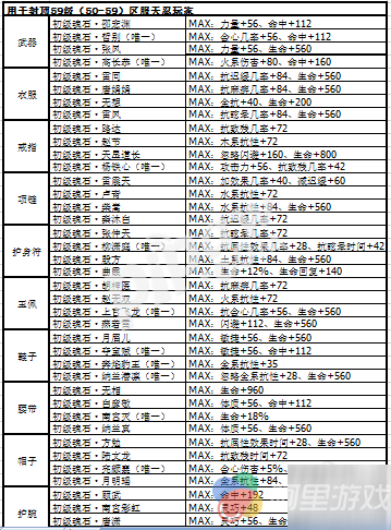 三、50级到59级天忍魂石各部件推荐: