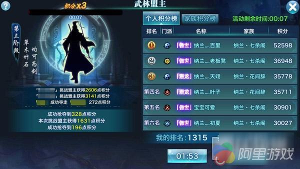 三、武林盟主物品掉落数量上调 50%。在周六日,武林盟主的物品掉落数量也会调高 50%,缓解了盟主令一令难求的局面!家族排名越高,奖励越多,想要晋升头衔的玩家千万记得要参加。