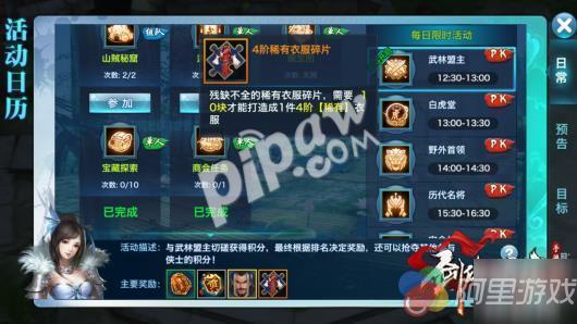 武林盟主:每日两次,挑战盟主,最后根据排名获得奖励,同时是家族提高声望的主要途径,排名越靠前,发放的家族拍卖奖品越多,同时参与武林盟主的人可以获得拍卖分红,这也是一大笔元宝收入。
