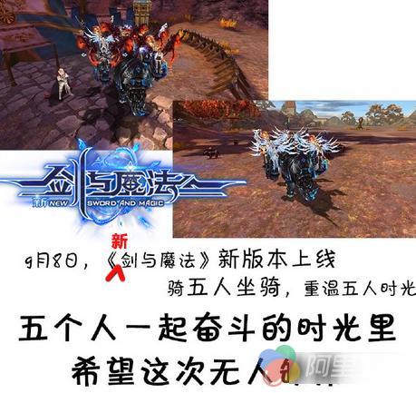 现在,“新剑魔”游戏中,五人坐骑隆重上线,带你重温五人愉快时光。在浪漫唯美世界中五人组队,同乘坐骑踏遍“新剑魔”内每个地图,每一次冒险、每一次PK、每一次战场,谁都不再缺席!
