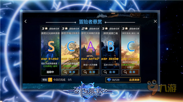 “悬赏系统”指的是每天可以选择完成的固定悬赏任务。玩家到达10级就能开启,一般来说,每天完成5个。但当玩家完成冒险者升阶后,可额外获得5次悬赏。悬赏任务按照品质分为S、A、B、C、D,品质越高经验越多,想要完成更多S级任务,就可以通过消耗悬赏令或钻石来刷新品质,不限次数。