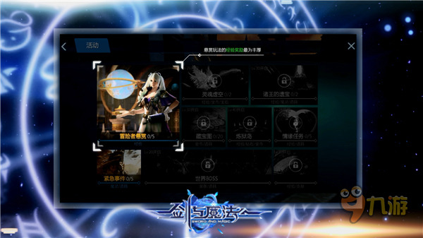 “冒险者系统”包含三大分支:悬赏系统、成就系统和冒险者等级。