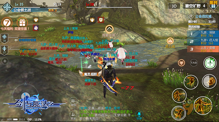 公会军团烽火燃起,领土霸权荣耀巅峰。“领土争夺战”结束时获得积分最高的公会将获得该地图的领导权,公会名字将印在地图的图腾上进行展示,当玩家进入到该地图后,屏幕中间将显示出当前占领该地图的公会的名称,这就是公会实力的象征,荣耀的彰显。同时,占领公会的成员在该图内玩耍时,道具掉落的几率和经验获得量都会有大幅的提升哦。奖励极度诱人,各公会的战士们为此不顾一切奋力厮杀、激烈交战!听上去是不是极为过瘾?带上你的兄弟来《新剑与魔法》,证明自己、争夺领土,建立属于自己的“王国”吧!