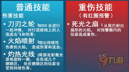 当BOSS释放灼热光线和火焰喷射的时候,尽量不要留在燃烧区,持续掉血的debuff会让你的血量快速消耗。