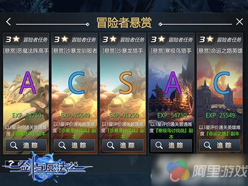“悬赏”任务等级由低至高分为D、C、B、A、S五个等级,其中最高等级S任务,在完成后将会获得海量的经验值!“悬赏”任务等级和玩家角色的等级息息相关,角色等级越高,随机出现的任务等级就越高,任务难度和最终奖励都会大大提升。每天凌晨5点“冒险者悬赏”活动会自动重置,不想错过每一天的海量经验,一定要在5点前完成它哦!
