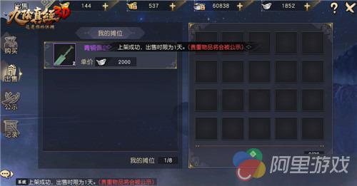 《九阴真经3D》交易行物品出售 价格太低会亏本的