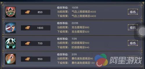 演武堂目前有4种修炼可供选择,并且相互不冲突