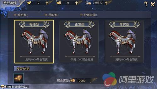 帮会运镖:护送时间内,成功将镖车送达目的地,则运镖成功,运镖帮会可以获得10000点帮会资金,参与运镖帮众可以获得100点帮会贡献,帮众个人奖励将以邮件形式发放