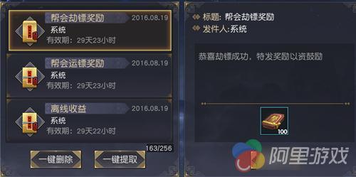 帮会劫镖:护送时间内,成功阻止镖车到达目的地或者镖车被摧毁,则劫镖成功,劫镖帮会可以获得10000点帮会资金,参与劫镖帮众可以获得100点帮会贡献,帮众个人奖励将以邮件形式发放