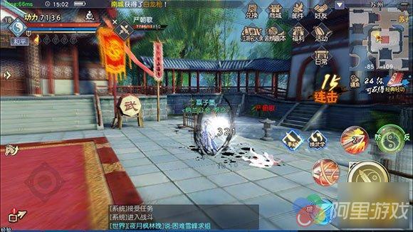 游戏的操作模式依旧是我们熟悉的虚拟摇杆和技能结合的方式,对新老手都十分亲切,容易上手。游戏的打击感也相当的出色,抑扬顿挫,带有模糊效果的打击画面加上打击音效,武侠人物在画面中划出一道道泼墨的招式,玩家们在采用自动战斗时,随时拉伸镜头,就好像在欣赏一部武侠大片一样。