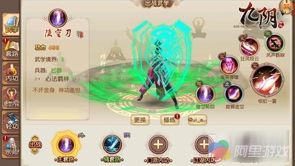 唐门中人一向很少在江湖上走动,亦行事诡秘,行为飘忽,留给江湖中人亦正亦邪、琢磨不透的印象。此次曝光的“隐空刃”却一反低调的常态,大有隐匿虚空,掌控轮回之气势。虽然神技“隐空刃”只有寥寥几招,但招招致命夺魂。新武学隐空刃将唐门稍显没落的控制流和闪避流重新发扬广大,其强力的控制效果与 Debuff 附加对妄图尝试远程风筝流的敌人有极强的控制效果。
