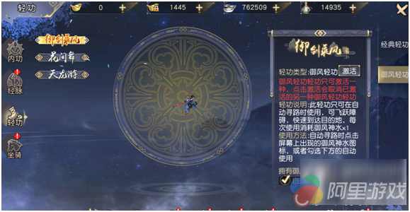 三种御风轻功:御剑乘风、花间舞、天龙游