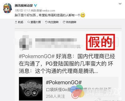 自从E3 2016上任天堂宣布7月底前正式公测以来,《精灵宝可梦:GO》的关注度也越来越高,以至于7月6日在澳大利亚和新西兰地区上线后,全球玩家疯狂涌入,最后官方无奈锁区,导致大量国内玩家高呼“没有《精灵宝可梦:GO》玩我要死了!”。此后,有消息称任天堂随后将会开放各个国家地区的正式版客户端,中国国内的代理商也正在沟通。正当网上疯传此代理商可能是腾讯之后,腾讯视频动漫在微博出面辟谣并表示:脑子是个好东西,希望乱传谣和造谣的人都有一个。