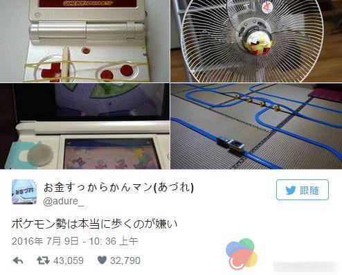 其实,过去许多玩家为了游戏也有许多偷懒方式,像是铜板卡按键、橡皮筋绑按键,甚至把有玩家吧“精灵宝可梦计步器”绑在电风扇的中央,一切都是为了在游戏中可以更快获得自己想达成的目的。