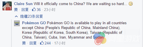 自从《精灵宝可梦GO(Pokémon GO)》推出之后在全球范围内都引起了轰动,此前服务器由于大量玩家的涌入导致问题重重,官方只能进行锁区,不过这丝毫不能影响到玩家们的热情,而广大中国玩家们最关注的就是游戏能否在国内上线。不过今天早些时候,官方 Facebook 上的一则回复可能会让玩家们失望了。