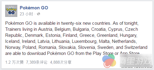 根据 Pokemon GO 官方推特和 Facebook 的消息,这款在全球火爆异常的 LBS 游戏刚刚在本周末追加了 26 个上线国家,如果你有这些国家的账号或者身在这些国家,已经可以正常游戏了。
