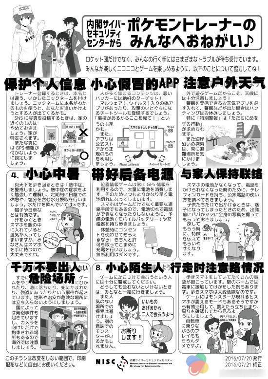 日本政府发布的玩《精灵宝可梦:GO》注意事项