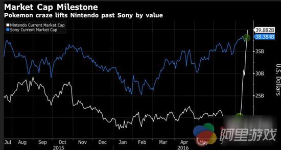 《PokemonGO》发售后 任天堂股价呈近90度直线上升