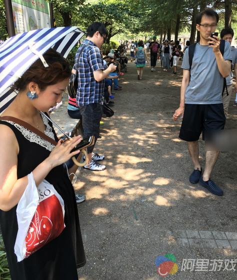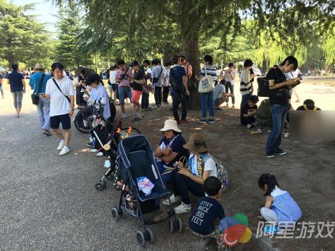 你们这些没有礼貌的家伙呀,不要挡路啊,你们自打游戏上线以来可就一直在被媒体数落呢!然而估计只有充电宝已经耗干、手机也即将没电、只是单纯想来圣地看看而已的我自己会这么想,一起下车的人可都是举着手机踏上站台的。从地铁站爬出来重新头顶正午的骄阳、被30度以上的空气再次包围的时候,映入眼帘的是这地方99%的人都在举着手机或站、或蹲、或坐在树荫里抓小精灵。