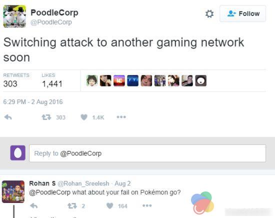 随后“PoodleCorp”更是发表推文,声称将会继续攻击其他游戏,目前还没有确切消息表示他们的下一个目标是谁,但有传闻称在海外掀起热潮的《精灵宝可梦:GO》或许会成为他们的下一个目标,还有看热闹不嫌事儿大的围观群众“诚心建议:选《精灵宝可梦:GO》吧!”