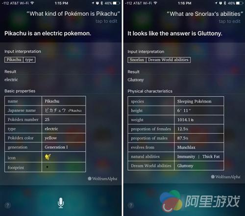 当然Siri也不是一直无厘头回答你《精灵宝可梦 GO》的有关问题的,如果你真的有认真的求助事项。Siri能够接入WolframAlpha知识库,提供关于某个特定精灵属性、能力、攻击等详细数据。