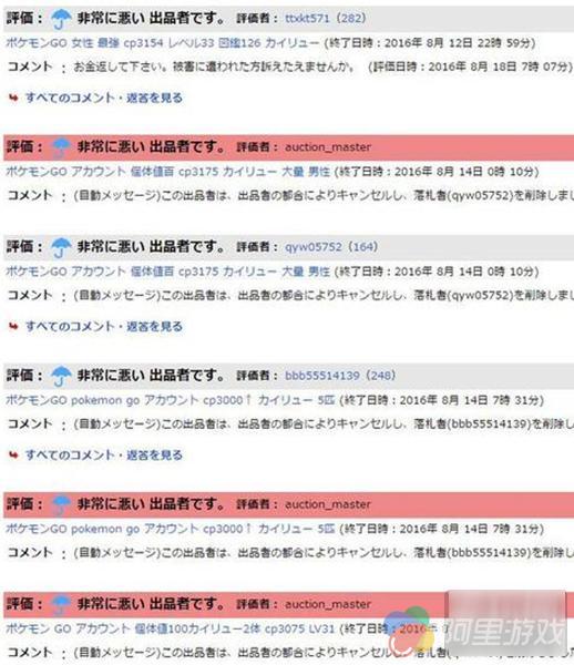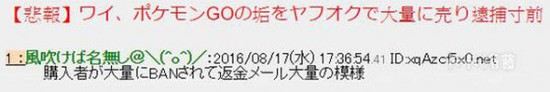 日本网站贩卖《精灵宝可梦GO》帐号的例子