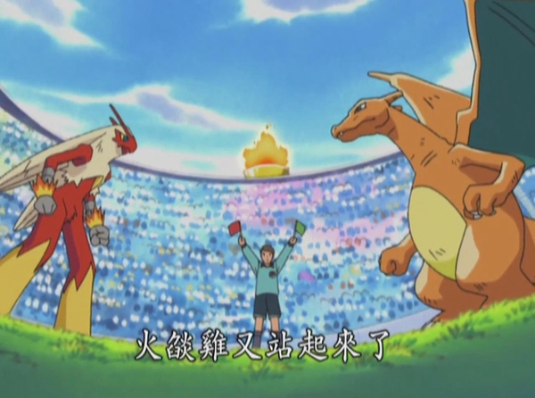 本以为连属性压制的对手都能够战胜的小智这回应该能够再下一城,结果下一局的对手居然拥有下一个地区——芳缘地区(宝石版)才能得到的火焰鸡。