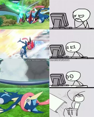 在最新的卡洛斯联盟(对应游戏XY版)小智终于打进了决赛,最后一战,面对宿敌阿兰的已经受伤的MEGA喷火龙,小智满状态的甲贺忍蛙最终互拼一记大招。
