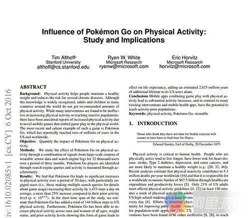 这个答案不是我瞎编的——斯坦福大学与微软的一项刚刚结束的“量化《精灵宝可梦GO》对身体活动影响”的研究中,研究者通过 32000 位玩家提供的《Pokemon GO》的可穿戴设备日志收集的资料得出的结果——玩了《精灵宝可梦 GO》的人三个月中身体活动有了显著增加。