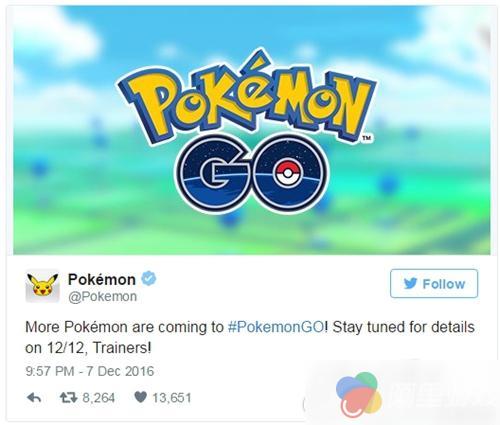 2016年已接近尾声,2017年就快要到了,《精灵宝可梦GO(Pokémon GO)》官方昨(7)日在**上透露了将会在12月12日发布新的情报,在那天训练员们就会知道游戏的更多情报,不过最重点的应该就是第二代新Pokemon吧。