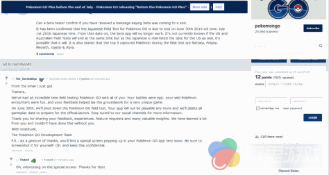 今日有玩家在Reddit爆料,称Niantic已经通过邮件向测试玩家宣布《口袋妖怪GO》(Pokemon GO/精灵宝可梦GO)的地域测试即将完成,官方将在6月30日(美国时间7月1日)关闭测试服务器。