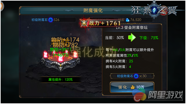 在本次的版本更新后,除了附魔概率的上调改动,还强势加入了附魔祭坛功能。其主要功能是大幅度提升玩家的附魔属性;增强当前附魔属性的百分比,这可是只需要只消耗附魔石和金币就能让属性翻倍增长的利器哦。