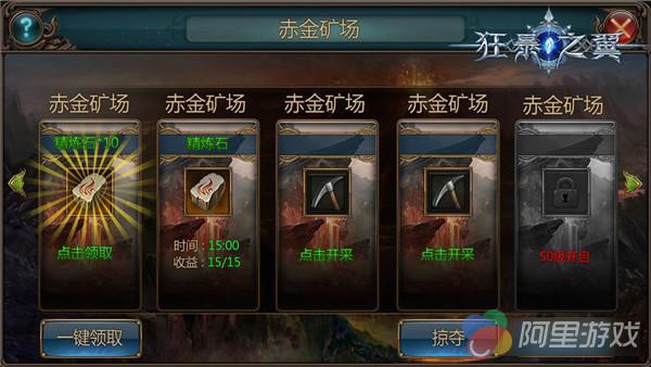 开采矿场,可以获得珍稀资源和道具。随着等级提升,可开采的矿场将越来越多也越来越高级,获得的奖励也越好。