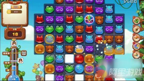 1、这关难度并不是很大,前面先利用现成的特效打中间的无敌毛球
