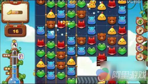 1、这关连消比较多,先组4把精灵罐打开,然后想办法调整左下角的动物让豆荚滑下去