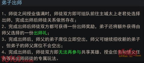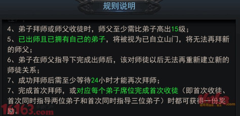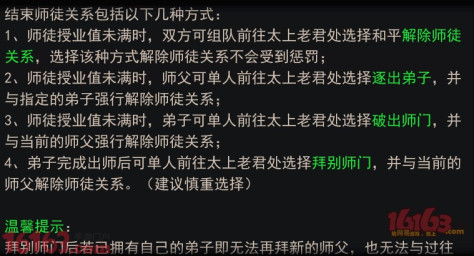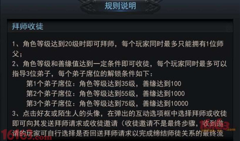 师父要比弟子等级高,这是一定要的,已经有师父的或者已经出师的,就不能再去泡师父。徒弟如果出师了,那你们的师徒关系就结束。