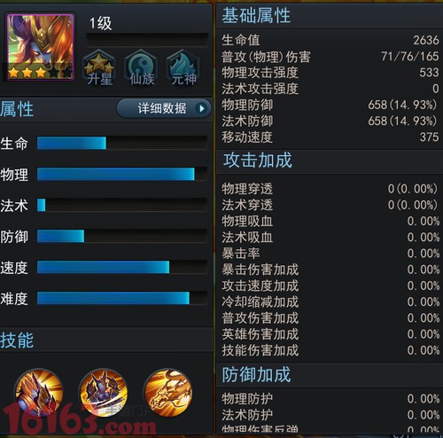 对魔族英雄造成伤害提升15%/对四星以下英雄造成伤害提升15%/受到所有物理伤害降低30%